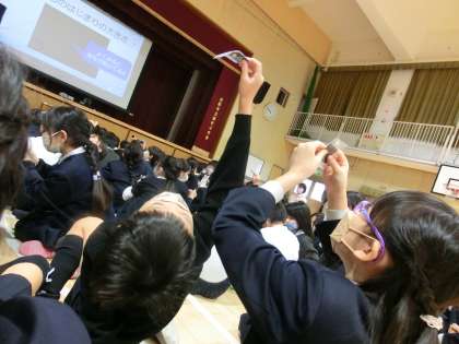 子どもたちはいただいた資料を天井にかざしながら大きさを確認していました。