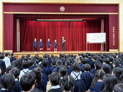 校長先生は、子どもたちの元気な挨拶と新年のあいさつに、心から喜んでいらっしゃいました。昨年に引き続き、今年も「笑顔」がキーワードとなるようです。しかし、今年のテーマは「笑顔笑顔」からさらに一歩進み、「楽しいことをいっぱいしよう」とのこと。楽しいことは一人ではできません。みんなで力を合わせ、楽しい思い出をたくさん作りましょう。