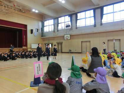 今日は6つの幼稚園・保育園から園児が苗代小学校に来てくれました。