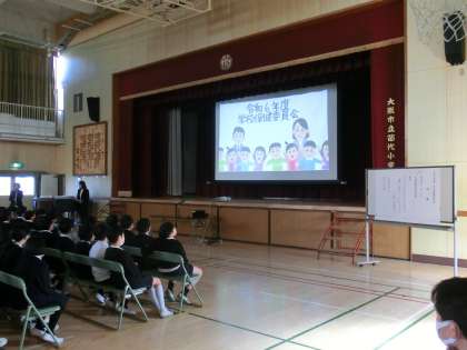 保健委員会の児童が、みんなのこころが元気になるよう4つのグループにわかれて活動してきたことを発表し、それを受けて本校スクールカウンセラーの阿部先生よりご講演いただきました。保健委員会の活動の中で共通していたのは「言葉」で、「言葉」は日本古来より「言霊」と言われ、よい言葉を使うとよい影響が、悪い言葉を使うと悪い影響があると社会学的に実証されていることも教えていただきました。また、悩み事を解消する方法も具体的に教えてくださいました。小学生にもよくわかるお話をしてくださり、大変よい学びができました。