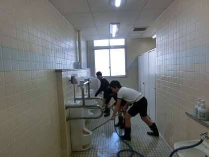 普段の清掃では手の届きにくい場所までしっかりと掃除し、廊下や特別教室などを隅々まできれいにしました。また、在校生が気持ちよく使えるようにと、机やロッカーの整理、窓ふきなども丁寧に行いました。