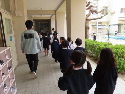 廊下は右側を歩くなど、廊下の歩き方も一緒に教えてもらっていました。