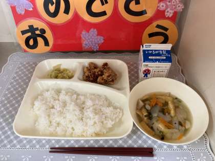 子どもたちに大人気の「鶏肉のたつたあげ」は、じゃんけん大会が行われている学級もありました。もっとたくさん食べたかったようです。どの学級も完食でした。