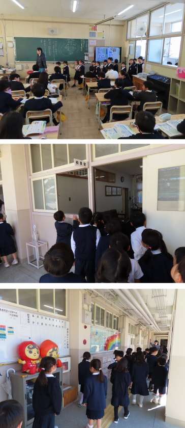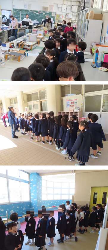 今日の2時間目、1年生が学校のいろいろな教室を回る『学校たんけん』をしました。