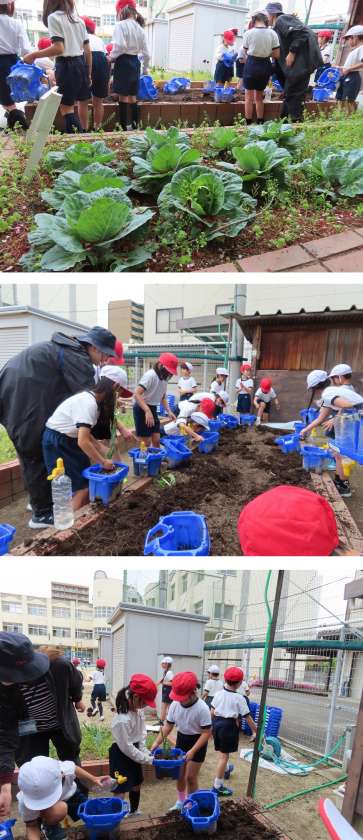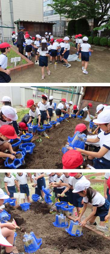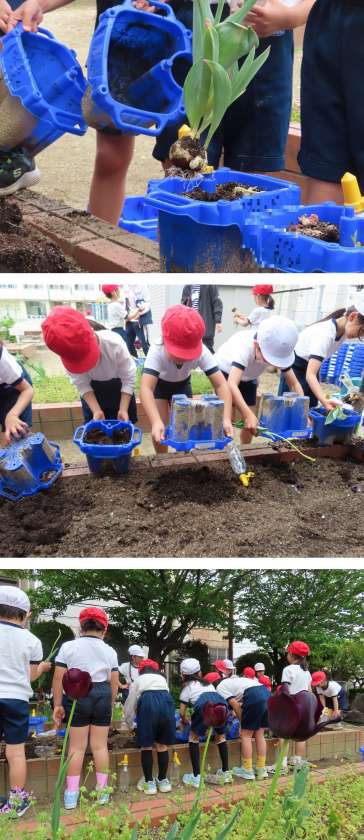 今日は、そのチューリップの球根を抜いて、鉢の土を学習園に戻していました。