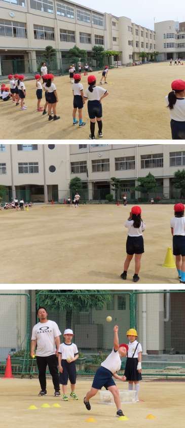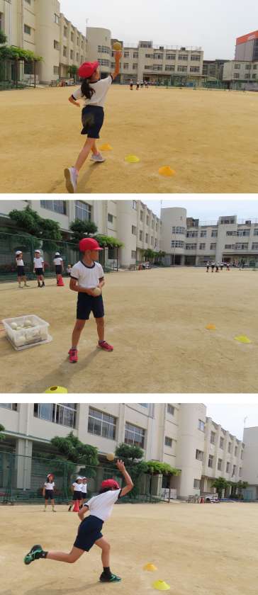 スポーツテストの一つ『ソフトボール投げ』を、3年生がしていました。