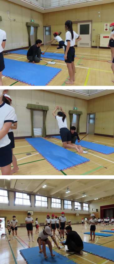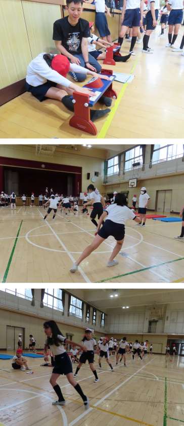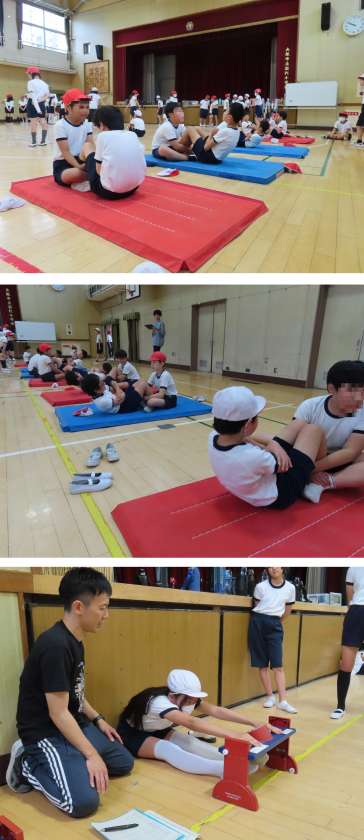 運動場は使えませんでしたが、講堂ではスポーツテストを行っていました。