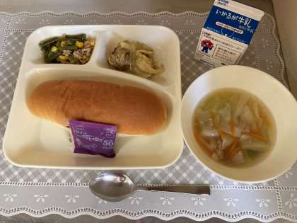 今日の給食には、ツナとコーンといっしょに炒めた「ツナとさんどまめのソテー」が登場しました。