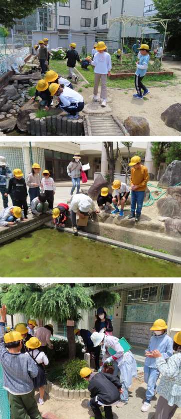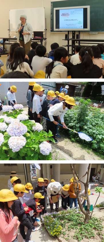 今日は、大阪市立環境科学研究センターの方に来ていただき、4年生の子どもたちが『生き物さがし』を行いました。