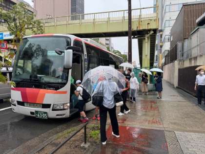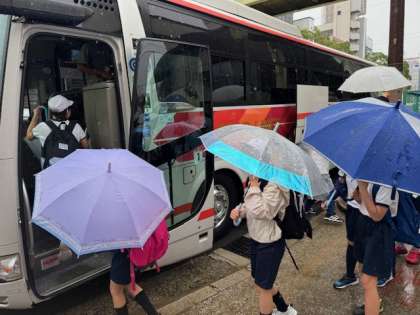 雨の中ですが、子どもたちはとても元気に出発しました!