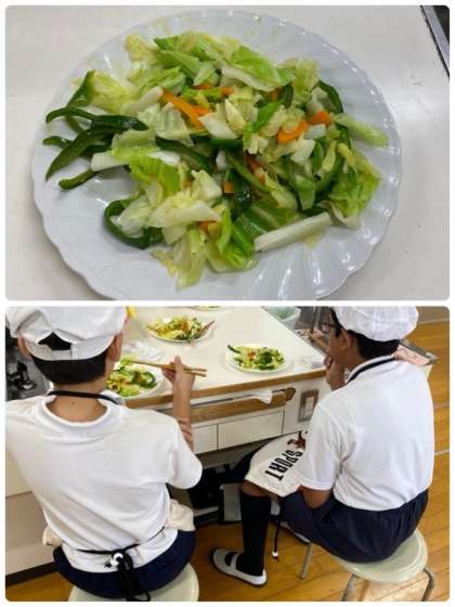 学習したことを活かし、野菜炒めを作りました。