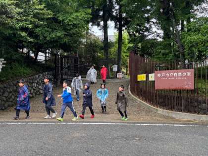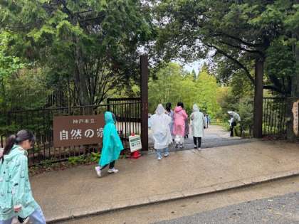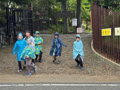 カッパを着て、外で朝の集いをすることにしました。
