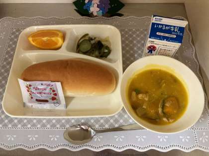 今日の給食の「ミックス海そうのサラダ」には、わかめ、くきわかめ、こんぶ、赤とさかのりが使われています。