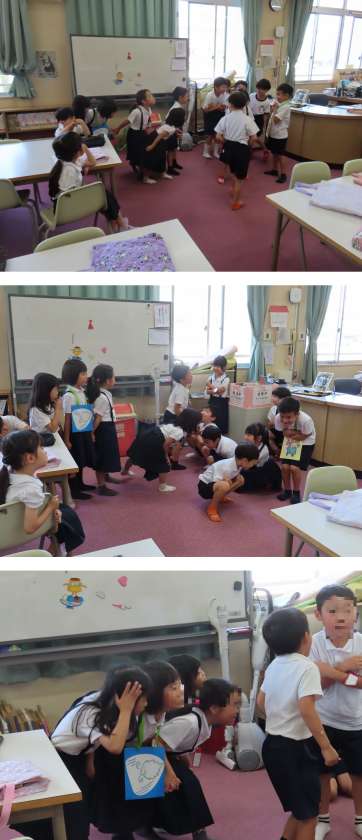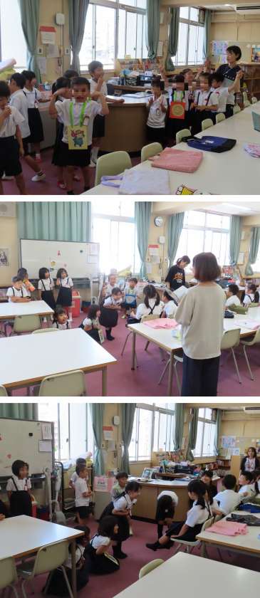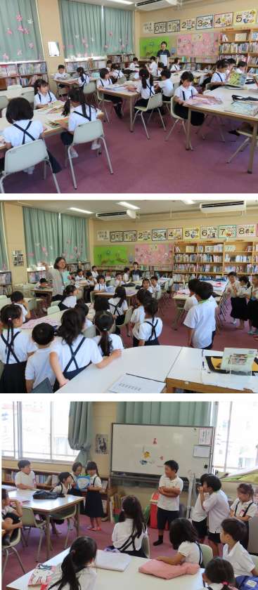1年生の図書の時間に、アニマシオンで「北風と太陽」に取り組みました。