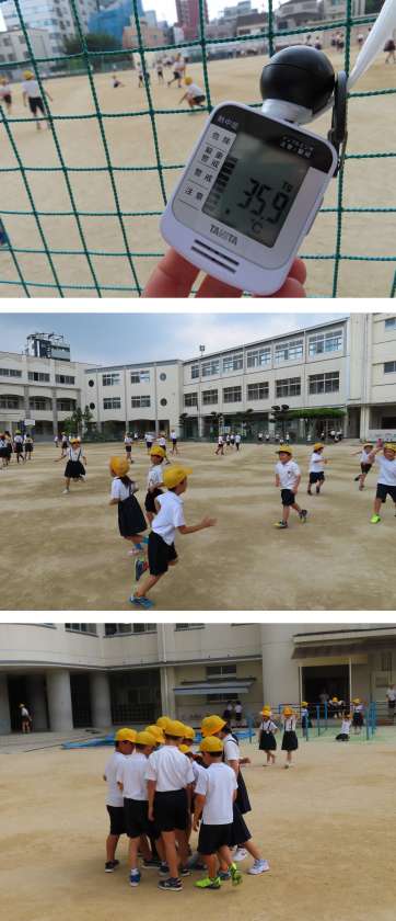 連日、熱中症指数が『危険』となり、運動場で遊ぶのを中止することが増えています。