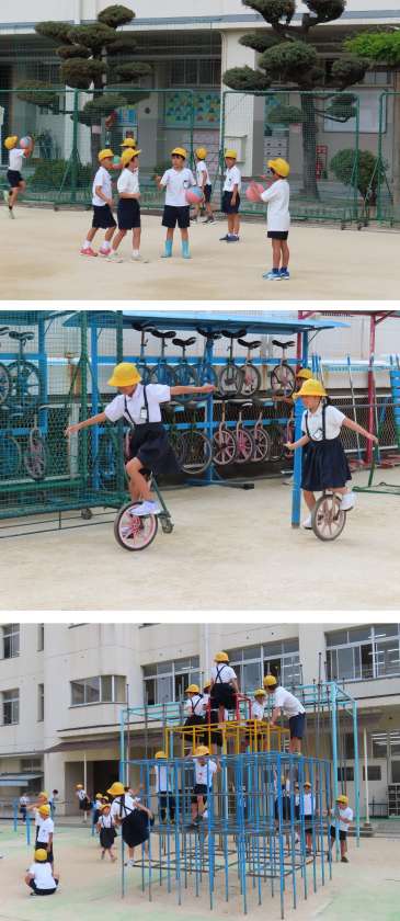 さっそく運動場に出て、いろいろな遊びを始めました。