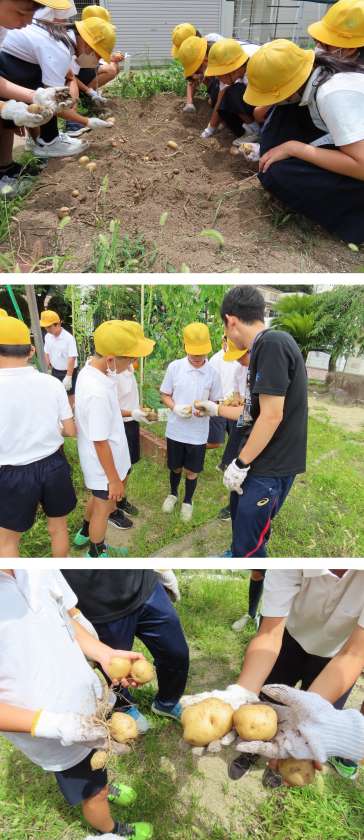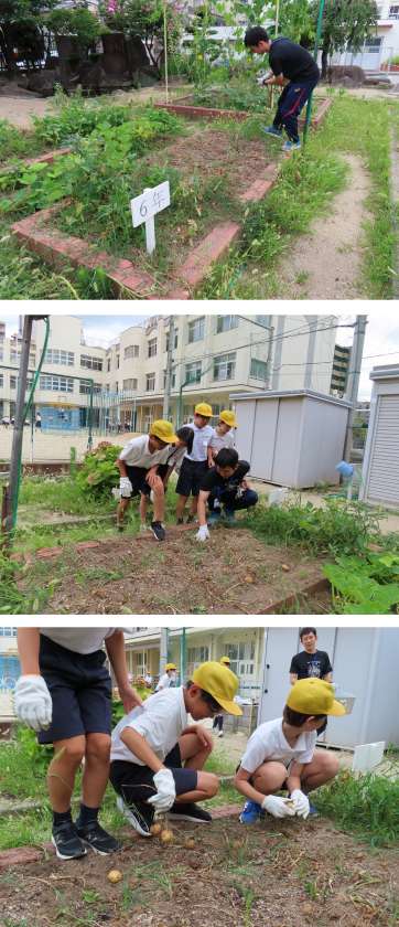 2時間目の休み時間、6年生が「じゃがいもの収穫」をしました。