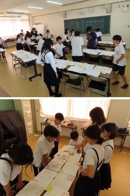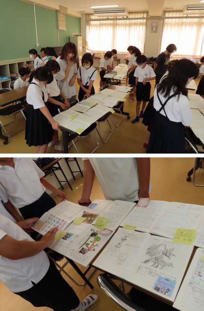 友だちの自学ノートを見て、自分のノートをふり返ったり、次に調べてみたい内容に意欲をかき立てられたりしていました。
