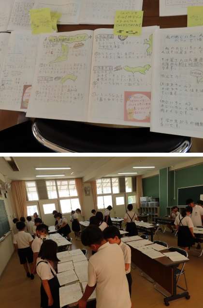 その自学ノートを多目的室に並べ、学年みんなで見ていました。