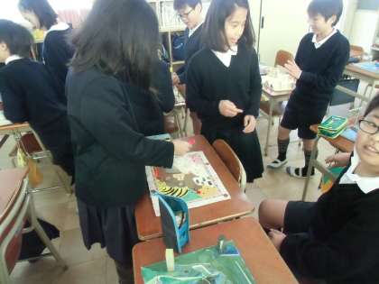 図画工作科の時間に、1枚の木の板から、電動のこぎりを使って、パズルや迷路を作りました。思い思いの作品ができあがり、ビー玉を使ってみんなで遊びました。「まず、自分の迷路からクリアしよう!」という子ども、「○○くん、これで遊んでいい?」と友だちの迷路で遊ぶ子ども、それぞれに完成した作品を楽しむことができました。