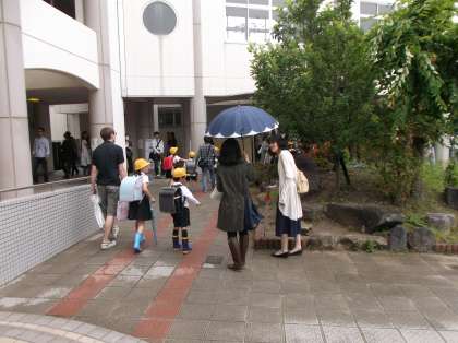 地震や台風などの災害により、保護者に迎えに来ていただき、子どもたちが安全に下校できるようにするための訓練をおこないました。毎年、日曜参観の日を利用して、訓練を実施しています。今日は、大型台風が近づき、暴風警報が出されたという想定でおこないました。避難の放送を聞いた後、各教室から講堂へ集合します。そして順番に保護者確認を担任がした上で、一緒に下校してもらいます。子どもたちは、お家の方の顔を見るとやっぱりほっとした表情を浮かべ、うれしそうに連れ立って下校していました。訓練ですが、訓練でできないことは本番ではできないことを子どもたちには指導しています。