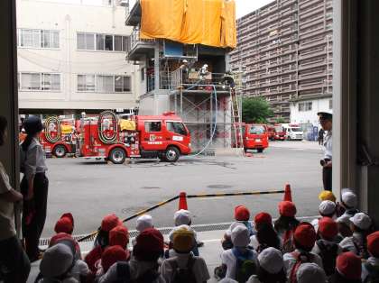 社会科の学習で、消防署の見学に行きました。ちょうど、訓練の時間に重なり、めったに見られない消防訓練の様子を見学できました。正しい知識に裏付けられた技術と体力を駆使した訓練の様子は、子どもたちに大きな感動を与えたようです。また、阪神淡路大震災の時のDVDの視聴もあり、当時の様子から、いつ起こるかわからない災害に対しての備えについても学ぶことができました。