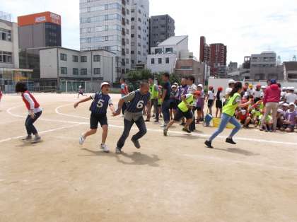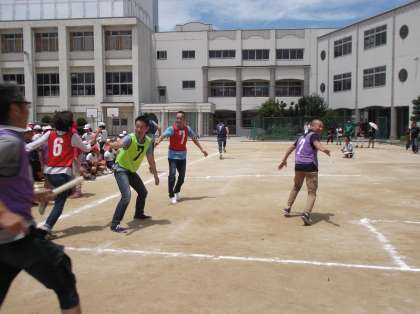 そして、3時間目は5・6年生です。初めに「玉入れ大会」です。童心に帰って、無心に玉を入れる保護者の皆さん。子どもたちより一生懸命です。さすがにお家の方々は上手に入れていきます。そして最後の種目は、「リレー大会」! 保護者の方と子どもたちが合同チームを作って、いざ勝負。まわりの応援も熱が入ります。「思ったようにスピードが出ないのはなぜ?」と思ったお家の方もいたことでしょう。みんなで盛り上がった親子スポーツとなりました。