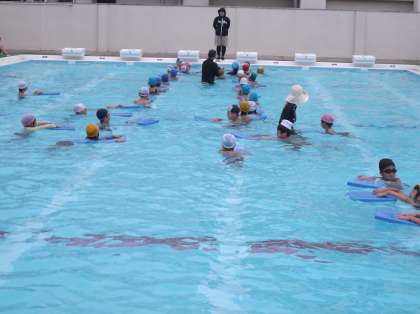 6月、水泳学習が始まったころは、冷たいシャワーを浴びて悲鳴を上げていた1年生も、とうとう1学期最後のプールの時間になりました。見てください。ビート版を持って、けのびもできるようになりました。けのびはすべての泳法の基本です。しっかり基本を身につけて、泳力をのばしていきましょう。2学期には、もっとたくましい泳ぎができるといいですね。夏休みのプール開放も楽しみですね。みなさん、来てくださいね!