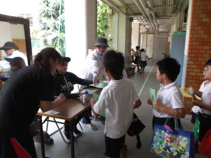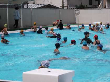 夏休みが始まりました。学校では、夏休み中の水泳学習にたくさんのお友だちがやって来ています。昨日終業式でしたので、子どもたちも普段と変わりなく、元気いっぱい。2学年ずつ時間を組んでいます。前半の大部分を使って、水泳指導を行いながら、得意な子はさらに泳力を伸ばし、苦手な子は、基本から練習しています。がんばって練習した後の後半には子どもたちが待ちに待った、自由の時間がありました。友だちと思い思いの過ごし方で楽しみます。プールから大きな歓声が聞こえてきます。すごく楽しそうです。