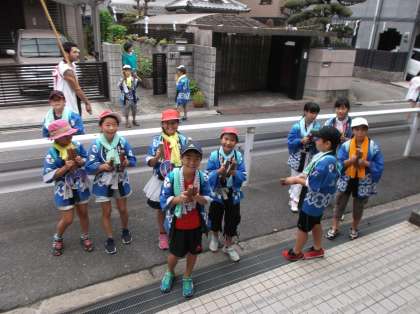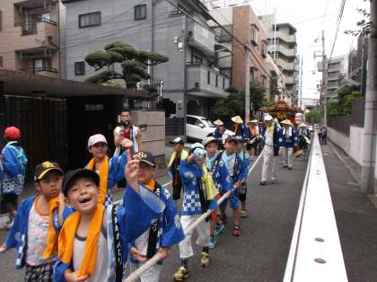 今日は、地域の神社の夏祭り。子どもたちが、だんじりを曳いて学校の正門までやって来ました。だんじりを曳く子どもたちは、地域の一員という自覚を持っているように感じます。みんな誇らしげで、頼もしく感じます。揃いのハッピを着て、元気に声をかけ合いながら、みんなで力を合わせてがんばっていました。地域の神社、王子神社は歴史ある神社です。熊野詣が流行していた平安時代からの歴史があるそうです。そんな伝統ある神社が地域にある子どもたち。地域の方々に見守られながら、これからも地域を愛し、地域を誇りに思い、成長していってほしいものです。お祭りは今日と、明日。この夏休みのいい思い出を、ぜひ作ってほしいと思います。