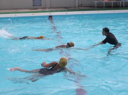 本校では、4年生以上の子どもで、25m泳げない子を対象に夏休みの午後3日間、水泳特別練習、特練を行っています。特練は、少ない人数で泳力別に泳ぎの基本から練習していきます。やはり、マンツーマンに近い指導と、子どもが素直にアドバイスを受け入れていくからでしょうか。瞬く間に泳力を伸ばし、昨日まで10mも泳げなかった子が25m泳げるようになっていきます。自信が自信を生み、どんどん距離を伸ばしていきます。改めて一人一人の子どもが持つ、成長していこうとする力に驚かされます。指導者の話をしっかり聞き、その指導を素直に受け入れていくことが、自分を成長させる大きな力になることを、この特練で学んでいます。