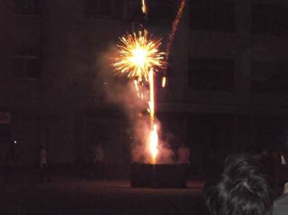そして最後は、盛大な花火大会です。お父さん方が花火師になって次々と打ち上げ花火を打ち上げていきます。大きな音を立て、夜空に美しい花を描いていきます。打ちあがるごとに湧き起こる歓声。苗代小学校の子どもたちがこれからも大きく成長していってほしいという願いが、花火に込められているようです。本当に、楽しい夏の夜の一日になりました。これで今年の「苗代子どもの広場」は終わりです。明日からの夏休みも大切に過ごしてほしいものです。(花火の音をお届けできないのが残念です。)