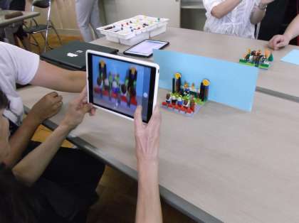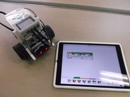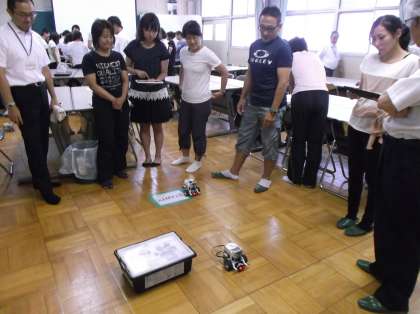 本校では、特色ある取り組みの一つとして、レゴに見立てたブロックを組み合わせてプログラムを作る学習に取り組んでいます。2020年度に予定されている新学習指導要領で必修化されるプログラミングの学習。私たち教える側がしっかりと研修を積み、準備を進めていくことが大切です。今日は、他校からも先生方に参加していただき、プログラミングの研修を行いました。子どもたちが使っている「マインドストーム」は、小学生でも使いやすく、理解しやすいアイコンプログラミングです。理科の授業だけでなく、算数などいろいろな教科での表現活動に対応できる教材です。こういった研修をこれからも続けながら、協働学習に活かしていきたいと考えています。