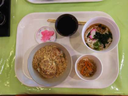 お昼はカツ丼。雨は降っていますが、風はありません。午後はカヌーです。全員元気です。明日は、快晴だと思います。