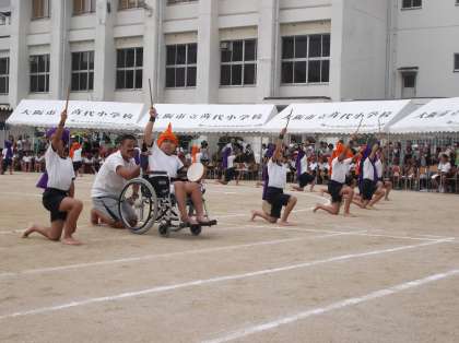上から、「ボイメンニンジャ86にんしゅう(1年)」・「ころがれ!!元気玉(2年)」「苗んちゅ エイサー(5年)」です。