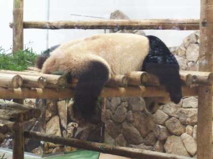 パンダは熟睡中。だれてます。今からイルカショーです。