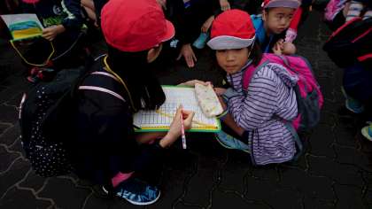 準備する6年生。リーダーは準備に余念がありません。がんばってます!