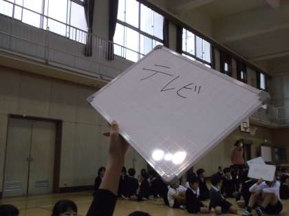 今日の児童集会は、シルエットクイズでした。集会委員会の子どもたちが模造紙にシルエットを描き、その答えをホワイトボードにたてわり班で書いていきます。1年生の子どもたちも楽しめる内容を考えるのは結構たいへんですが、高学年のおにいさん、おねえさんたちが上手にリードしていきます。先日あった校外たてわり活動を通して、チームワークがさらによくなったようです。高学年のいいところをしっかり学んで、いつかリーダーとして活躍してくれることでしょう。いろいろな経験を経て、子どもたちは日々成長していくのですね。