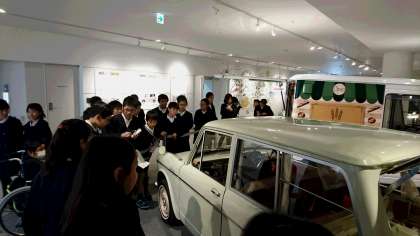 工場内は撮影禁止です。残念です。展示場の見学の様子です。