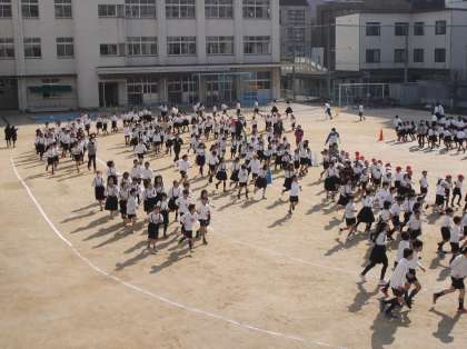 今週の月曜日から、かけ足タイムが始まっています。体力を向上させ、持久力を高めることへの関心を高めることと、自分の記録に挑戦することをめあてにして実施しています。子どもたちの興味・関心を持たせ、進んで取り組んでいこうという意欲を高めていくために、「がんばりカード」を作成しています。5・6年の体育委員会の子どもたちが先頭に立って、ペースを守りながら走っていきます。軽快な音楽に合わせて走る子どもたち。寒くっても平気です。苦手な子も、友だちと一緒に走っていると励みになるのでしょう。最後まで一生懸命走り続けています。これをきっかけにして、運動することの素晴らしさや楽しさを感じ、体育の授業と合わせて、「生涯スポーツ」へとつながっていけばと思います。
