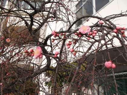 そんな寒い季節が続きますが、校庭の樹木を観察していると、「春の息吹」を感じる風景を発見できます。写真は、校庭の梅の花です。ピンク色した花や真っ白な花が咲いています。こうした花を見ていると、やっぱり春が近づいているなぁと感じます。まだまだ冷たい北風が吹く日が続くでしょうが、春はもうすぐそこまで来ているようです。