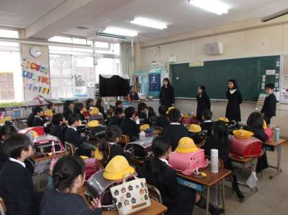 学期に一度、地区別子ども会の日を設定しています。災害時などの緊急時に、地区別にすばやく各教室に集合し、集団下校するための訓練です。3学期の地区別子ども会は、6年生にとっては最後の班長や副班長としての役割を果たすことになります。5年生は、とうとう学校のリーダーとなって活動する時期が近づいてきたことを意味します。自分たちの地域や登下校のようすについて話し合うだけでなく、この1年お世話になった6年生に感謝の気持ちを伝える場にもなりました。1年生の子どもたちも、ずいぶん頼もしくなりました。来年は、また新しい1年生を迎えて、それぞれの班で地区別子ども会を進めていく予定です。