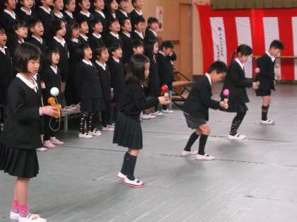 今日は、1年生が入学式で行う「歓迎のもよおし」の練習風景をご紹介します。昨日、卒業式が終わり、6年生が学校から旅立ちました。少しさびしい気がしますが、また4月になると新しい仲間が増えます。新1年生です。90名のかわいい弟や妹が加わります。その歓迎のもよおしの練習が始まりました。一年間を通して、ちょっぴりおにいちゃん、おねえちゃんになった1年生がお迎えします。学校で学んだことを通して、学校の紹介をしてくれます。新1年生のみなさん!みなさんが入学してくるのを待ってますよ。4月7日(金)が入学式です。元気に登校してくださいね。(写真のチューリップは、1年生が育てています。)