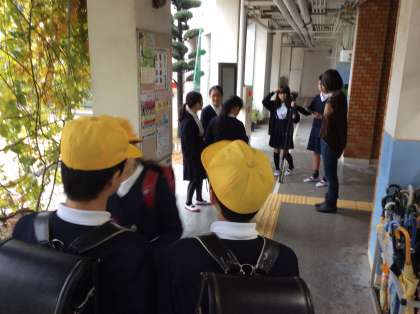 昨年末から準備してきた6年生映画作り。今日はあいにくの雨の中でしたが、それぞれのグループに分かれて、元気に映画撮影が行われました。「このカメラ、だんだん近づいて行ったほうがいい?固定?」「○○くんは、左側から入ってきて・・・」など、細かい最終確認をして、本番にのぞんでいました。標準服から私服に着替えたり、テロップを添えて撮影したりと、みんなとっても楽しそう。