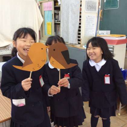 1年生が「二わのことり」という資料を使って、道徳の授業をしました。このお話は、“やまがら”から誕生日の招待状を受けながら、友だちに誘われるまま“うぐいす”の家に来てしまった“みそさざい”が、寂しく待っているであろう“やまがら”のことを思い、“やまがら”の家に行くというものです。