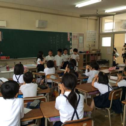 今学期初めの学習参観と懇談会。多くの保護者の方に、子どもたちの頑張りを参観していただきました。1年生は国語科の「ひらがなをかこう」、2年生は国語科の「風のゆうびんやさん」、3年生は国語科の「国語じてんのつかい方を知ろう」、4年生は国語科の「日本語のしらべ−春−」、5年生は社会科の「日本の地形と気候」、6年生は特別の教科道徳「ほんとうのことだけど」を学習しました。