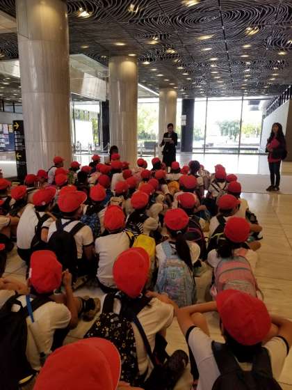 グループでルールを守って見学できました。展示物の中には、だまし絵のコーナーがあり、担任の先生に写真をとってもらいどのように見えるか確かめていました。
