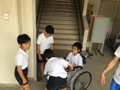 普段私たちが何の注意もなく通っているところでも、車いすを使われている人にとっては使いにくいところがもあります。私たちの苗代小学校にある低い段差でも、車いすに座っているとかなりの衝撃をうけるということがわかりました。