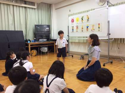 2年生はジョアン先生と気持ちの表し方を学びました。途中のジェスチャーゲームでは、子どもたちがジェスチャーした気持ちを、どんな気持ちか想像して当てあいっこをしました。みんな気持ちにぴったりあったジェスチャーをしていて、見ていてとても楽しかったです。今日、家に帰って聞いてみてください。“How are you?”