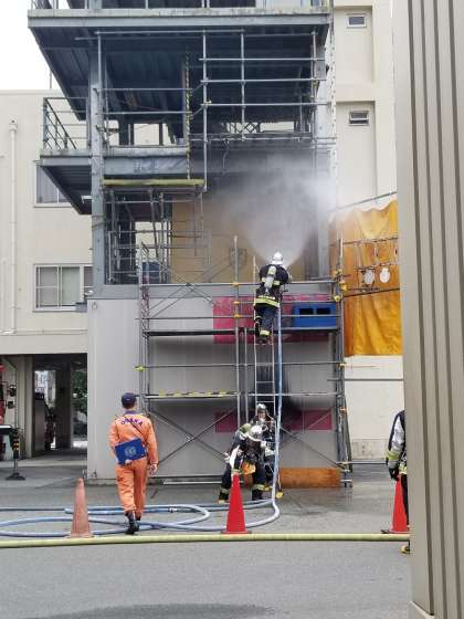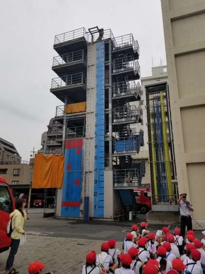4年生は社会見学で阿倍野消防署へ行ってきました。消防士さんが、実際に消火訓練を行っている姿を間近に見て、その迫力に子どもたちは驚いていました。そして、DVDを見ながら、クイズ形式で消防士の活動について学びました。また、はしご車体験では、担任の先生が実際にはしご車に上り、地上40メートル(ビル14階)の高さを体験したようです。(すごく怖かったと話されていました。)